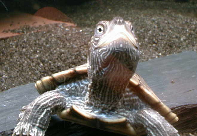wie die meisten Wasserschildkröten Fisch, für den sie sich